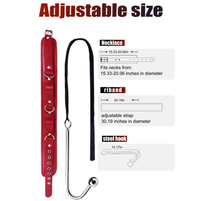 The leather collar fits most neck sizes, while the anal hook adjusts easily for different positions and intensity levels.